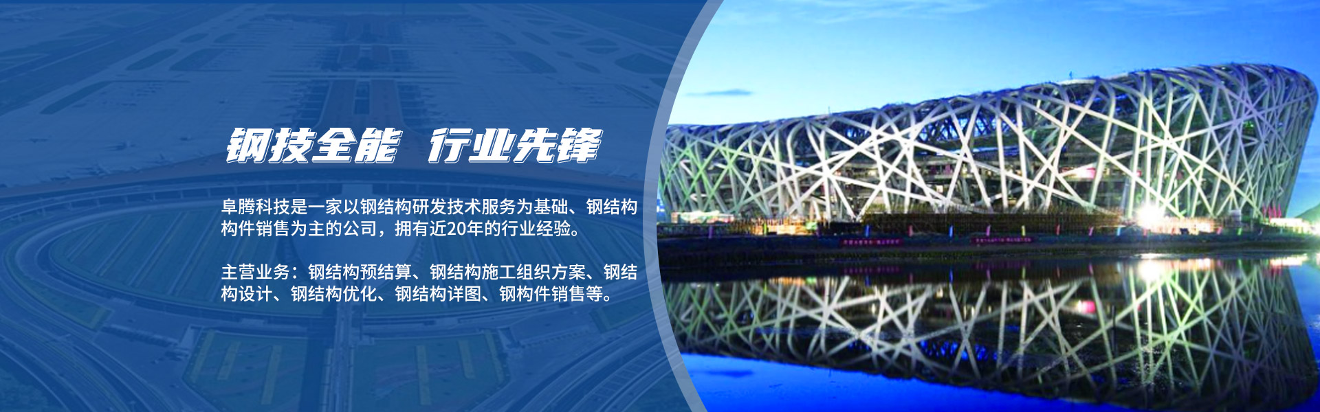 北京阜騰科技發(fā)展有限公司坐落于北京●順義,是一家以鋼結(jié)構(gòu)研發(fā)技術(shù)服務(wù)為基礎(chǔ)、鋼結(jié)構(gòu)構(gòu)件銷售為主的公司,擁有近20年的行業(yè)經(jīng)歷。